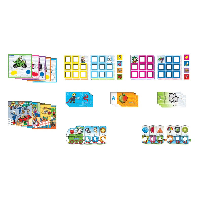 De doos bevat puzzels, memory en verschillende educatieve spelletjes die kinderen helpen logisch na te denken en verbanden te leggen. Ideaal voor thuisgebruik, de kleuterschool of de klas.