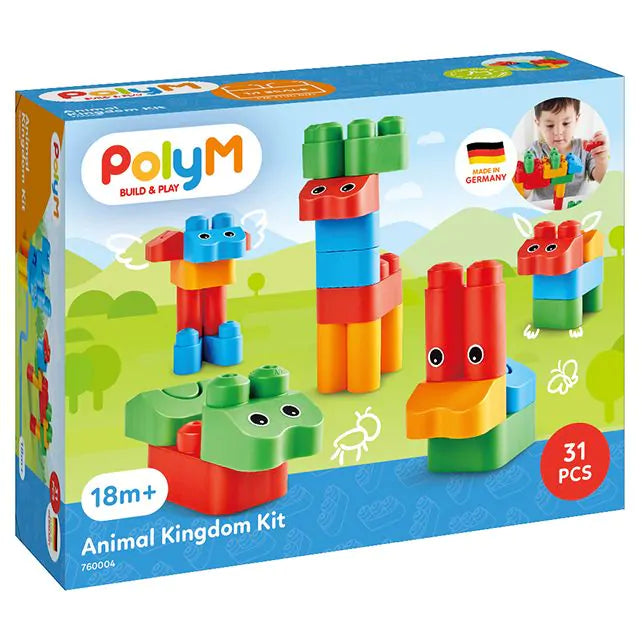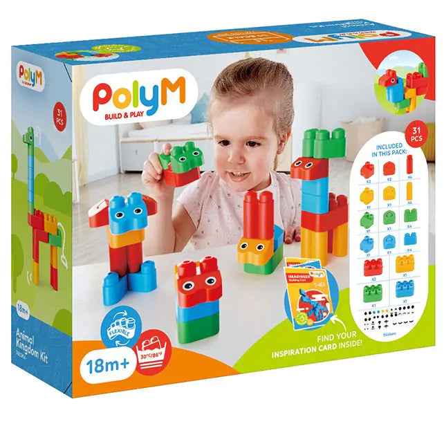 Laat de fantasie van je kind tot leven komen met de Animal Kingdom Kit van Poly M! Met zachte, kleurrijke Poly M-blokken bouwen kinderen eenvoudig hun eigen dierenwereld. Van herten en kamelen tot kikkers en fantasiedieren — alles is mogelijk met deze creatieve bouwset.