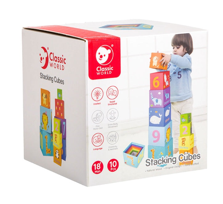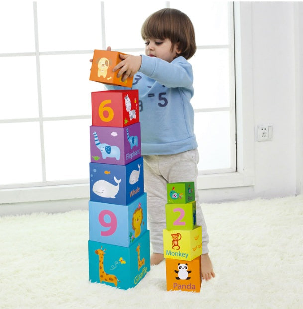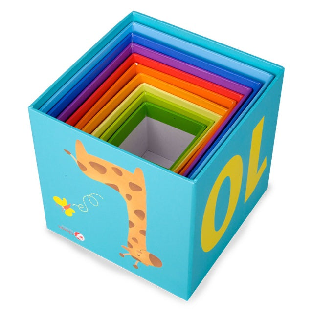 Deze set van 10 lichtgewicht stapelblokken combineert plezier met leren. Met vrolijke dieren- en cijferthema’s ontdekken kinderen kleuren, vormen en cijfers terwijl ze stapelen en combineren.