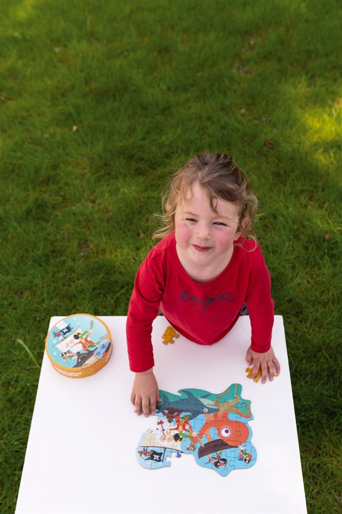Ahoy! Met deze Contour Puzzle Pirate ontdekken kinderen al puzzelend een stoere piratenwereld. De puzzel bestaat uit 30 stevige kartonnen stukjes en heeft een unieke contourvorm die aansluit op de afbeelding. Dat maakt puzzelen extra leuk en uitdagend voor jonge kinderen. Ideaal om concentratie, logisch denken en fijne motoriek spelenderwijs te stimuleren. Dankzij het compacte formaat is deze puzzel perfect voor thuis of onderweg.