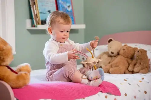 Dit trek- en fidget-speelgoed stimuleert op een speelse manier de fijne motoriek, hand-oogcoördinatie en sensorische ontwikkeling. De verschillende structuren en weerstanden maken het extra interessant voor nieuwsgierige handjes. Dankzij het compacte formaat is het ook ideaal voor onderweg of als rustgevend speelmoment tussendoor.