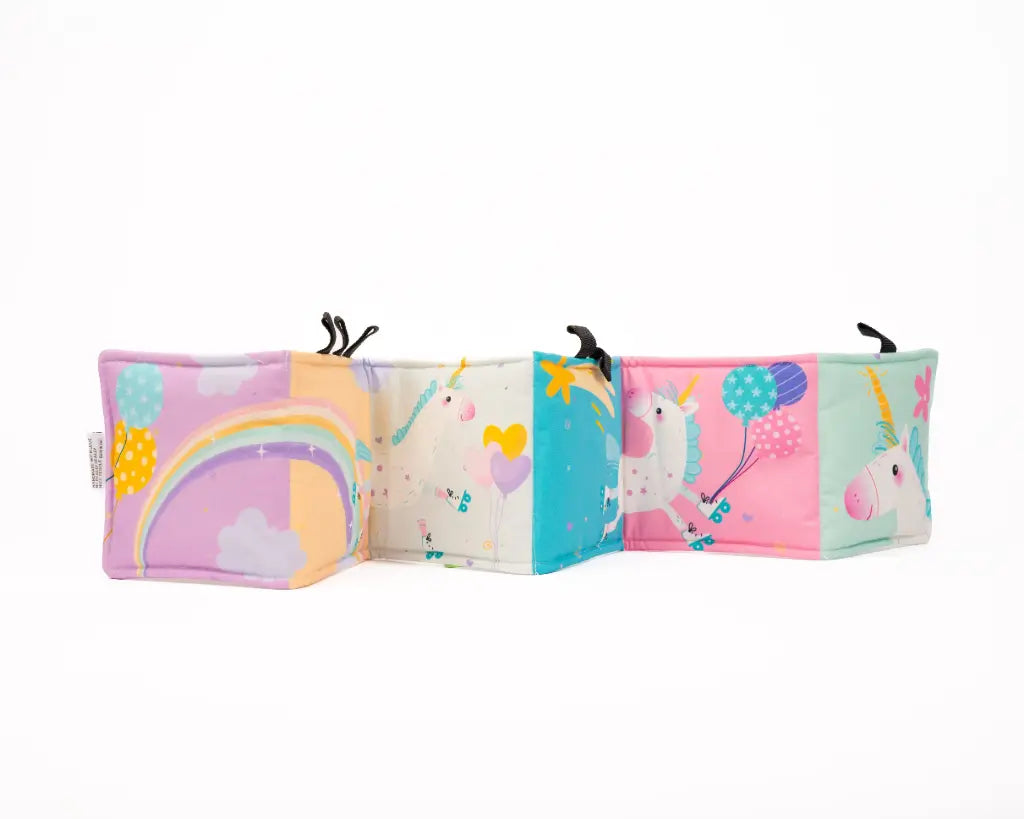 Ga op avontuur in de wildernis met dit leuke en leerzame stoffen activiteitenboekje! Dit 2-in-1 boekje is perfect voor kleine handjes en stimuleert spelenderwijs de eerste motorische en cognitieve vaardigheden van je baby of kindje.