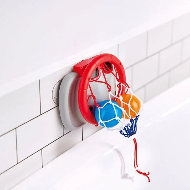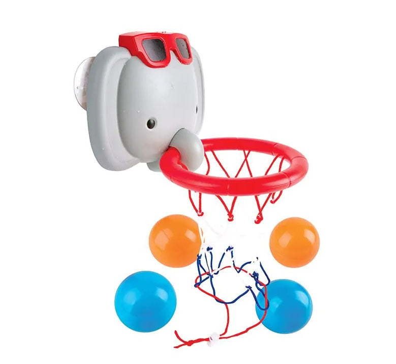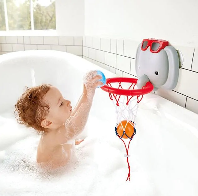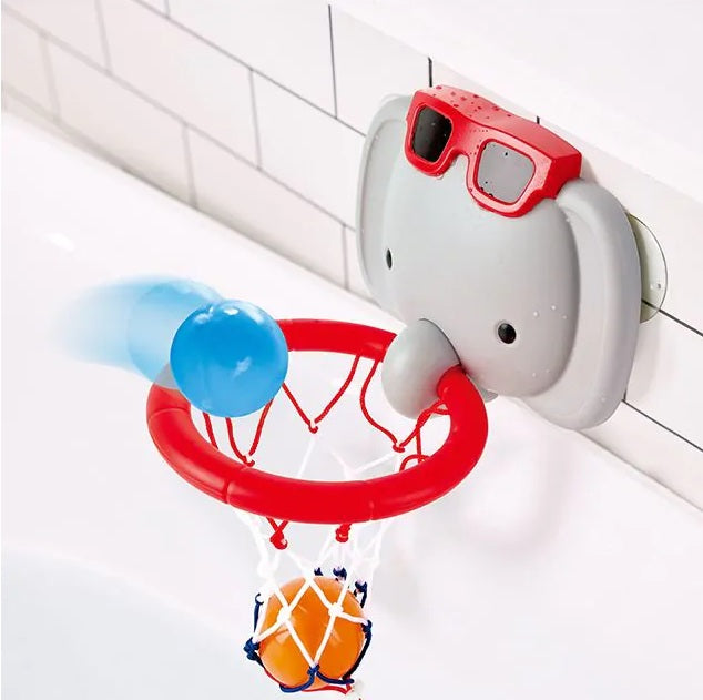 De hand-oogcoördinatie van jouw kindje wordt door het badspeeltje basketbal olifant verbeterd en de spieren worden verstrekt als ze de bal in het net gooien.