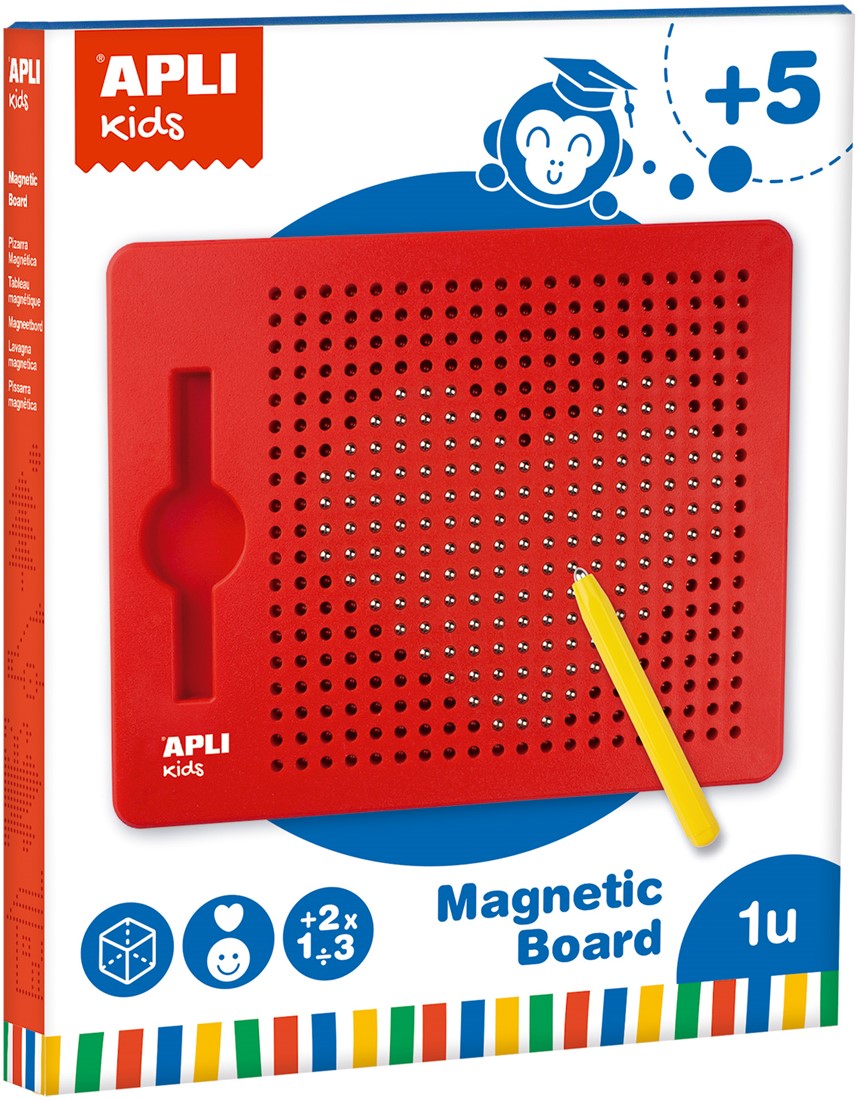 Het APLI magneetbord met pen is een creatief en educatief tekenbord waarmee kinderen spelenderwijs hun fijne motoriek en concentratie ontwikkelen. Met de magnetische pen maken ze patronen en tekeningen op het bord. Dankzij de 10 voorbeeldkaarten (20 opdrachten) kunnen ze meteen aan de slag.